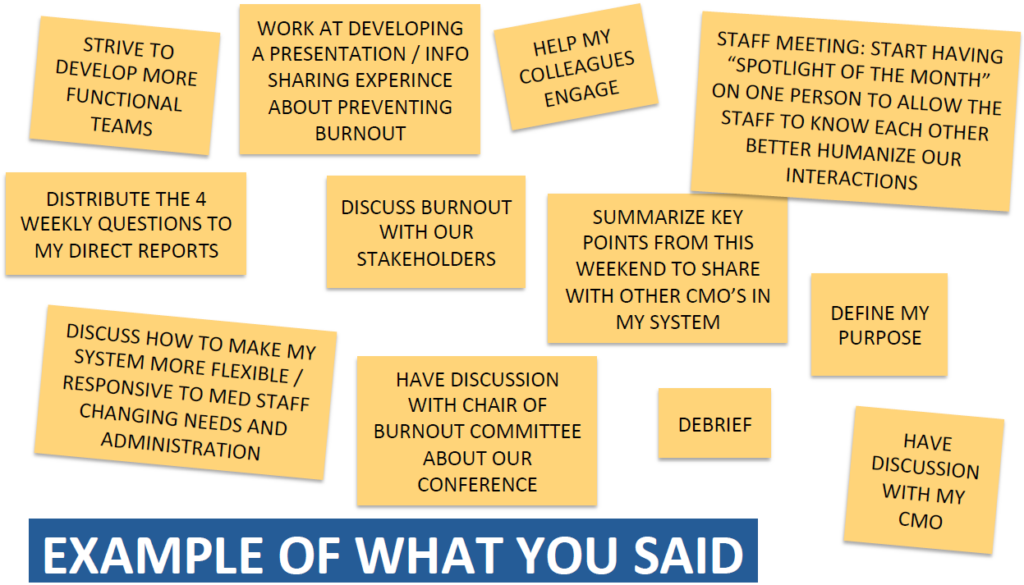 In partnership with the American Hospital Association we have convened groups of clinicians from across the country, both in person and through virtual sessions, to assess the current state of burnout and what strategies we might take to mitigate its impact on our workforce.